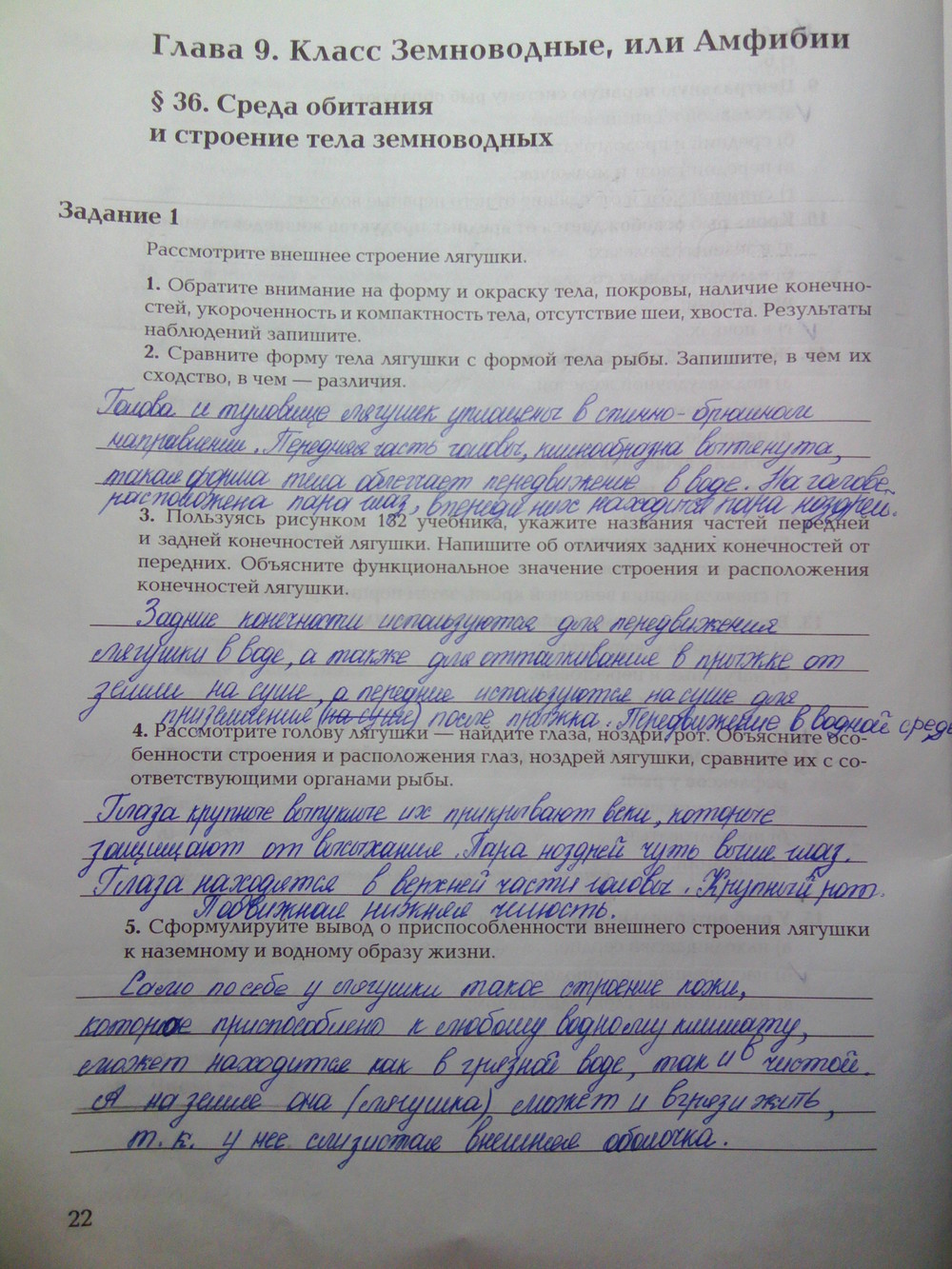 Решения домашних заданий по биологии 7 класс Суматохин С.В., Кучменко В.С. 22 упражнение Рабочая тетрадь