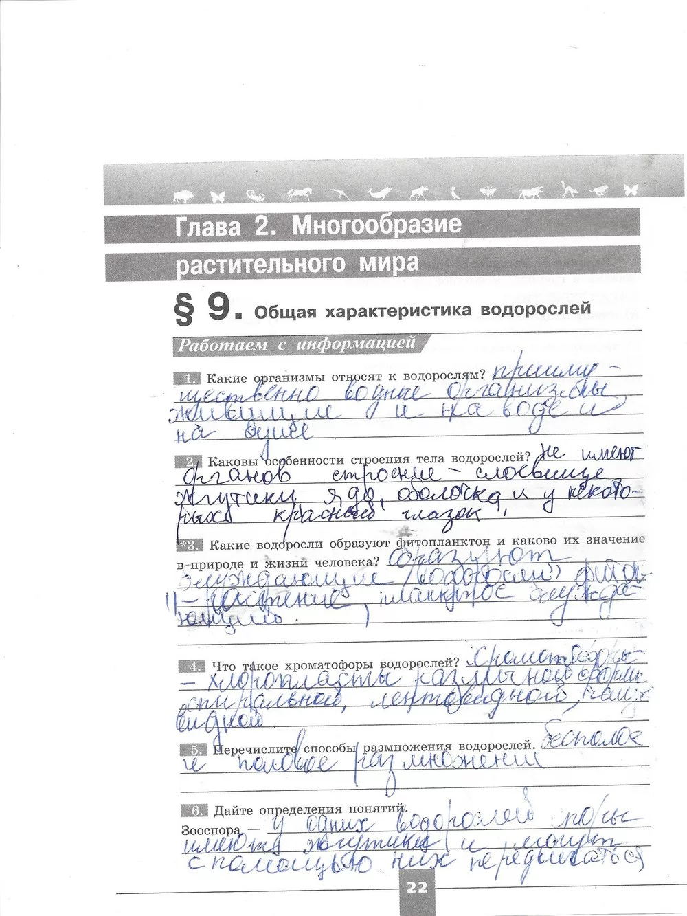 Решения домашних заданий по биологии 7 класс Пасечник В.В, Суматохин С.В., Калинова Г.С., Швецов Г.Г. 22 упражнение Рабочая тетрадь