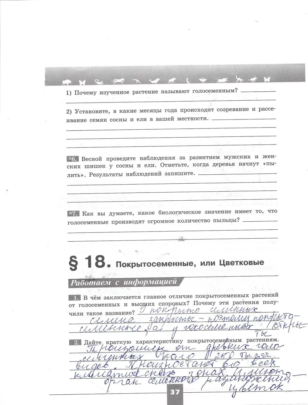 Решения домашних заданий по биологии 7 класс Пасечник В.В, Суматохин С.В., Калинова Г.С., Швецов Г.Г. 37 упражнение Рабочая тетрадь