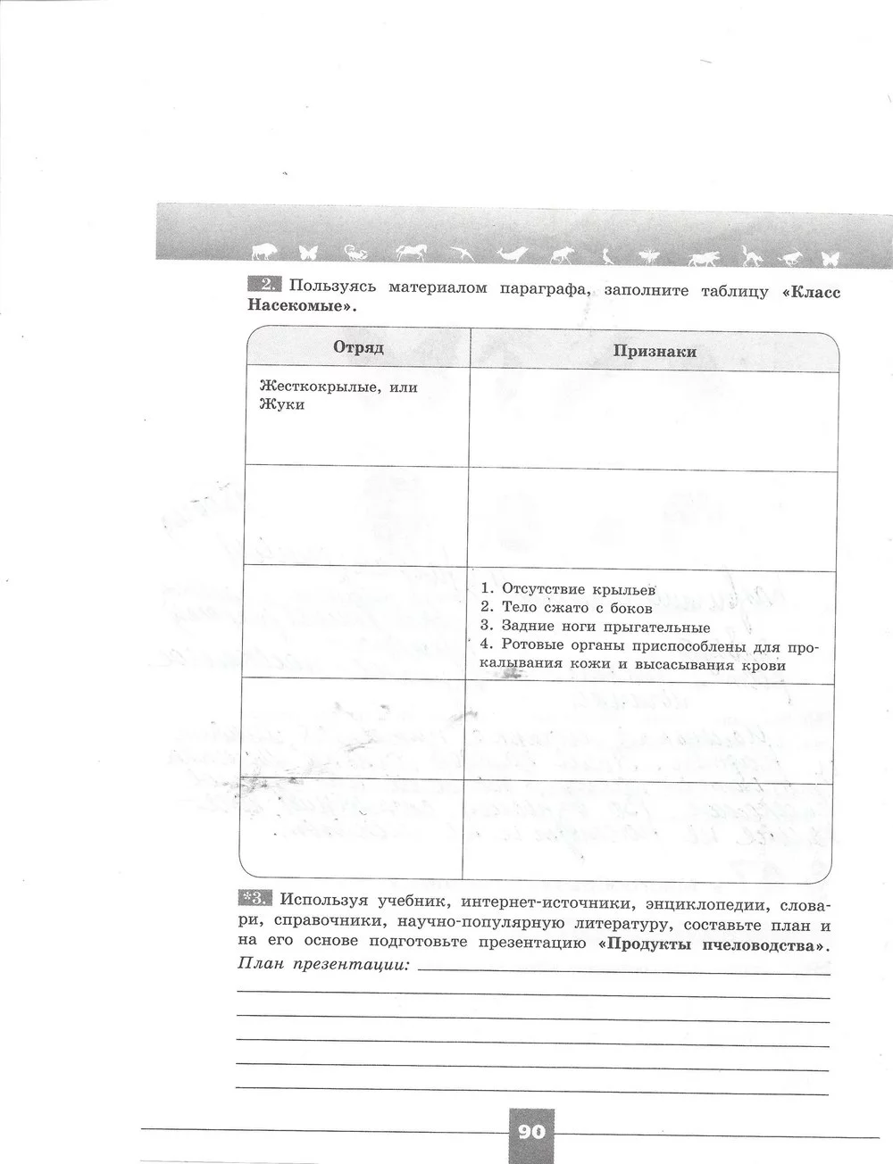 Решения домашних заданий по биологии 7 класс Пасечник В.В, Суматохин С.В., Калинова Г.С., Швецов Г.Г. 90 упражнение Рабочая тетрадь