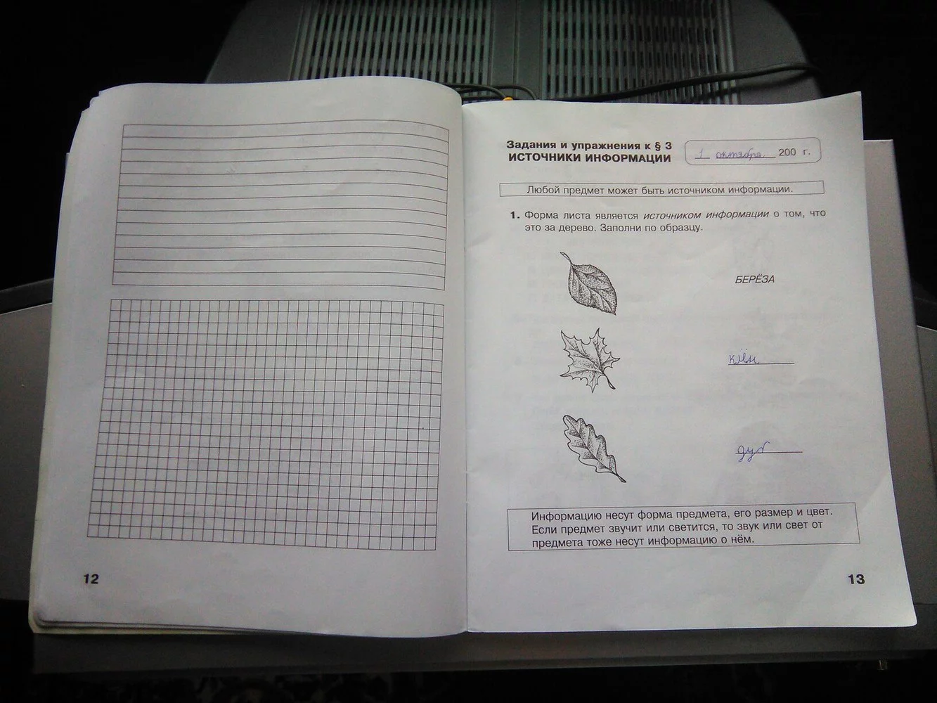 Решения домашних заданий по информатике 2 класс Матвеева Н.В 12-13 упражнение Рабочая тетрадь