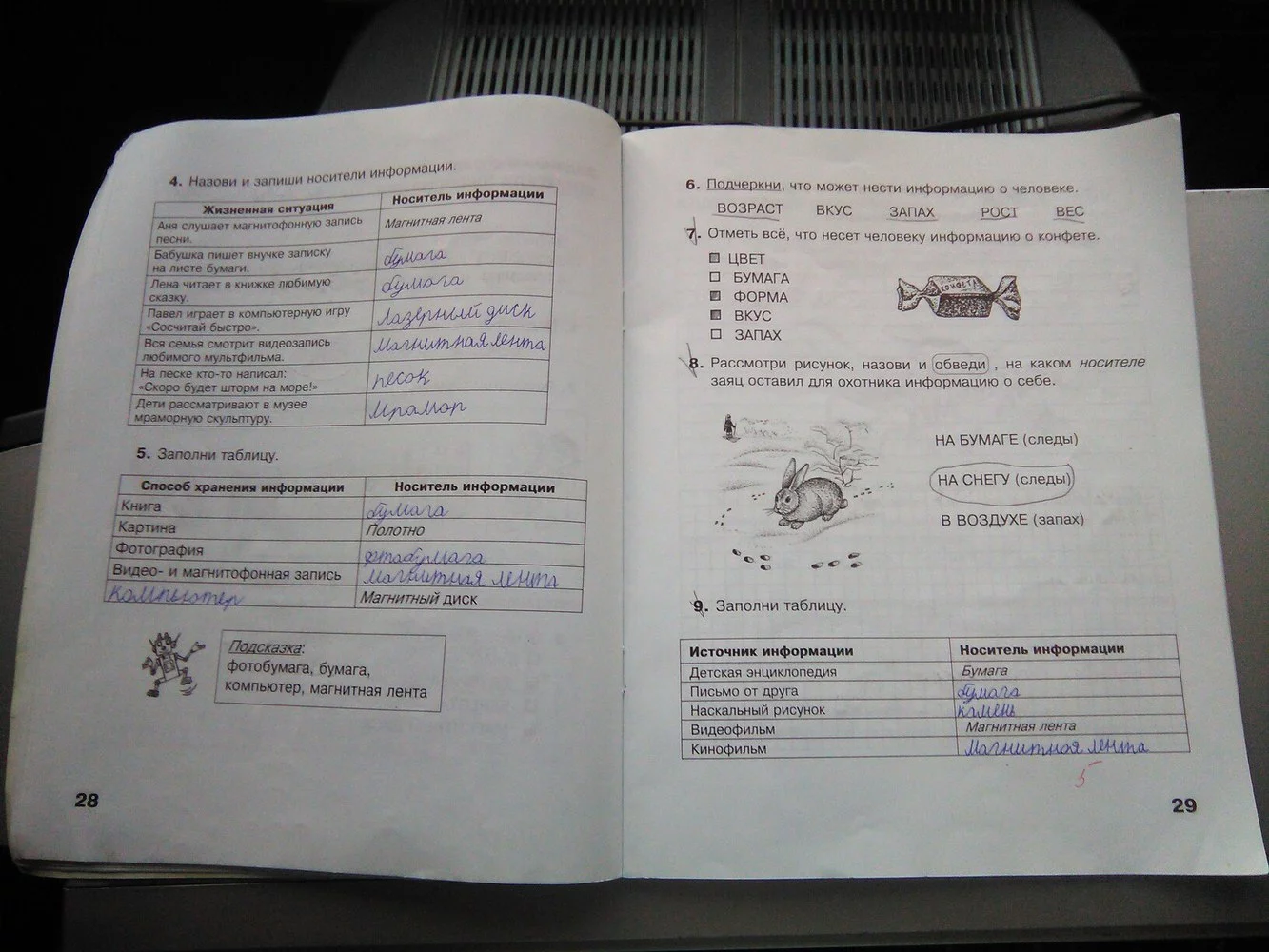 Решения домашних заданий по информатике 2 класс Матвеева Н.В 28-29 упражнение Рабочая тетрадь
