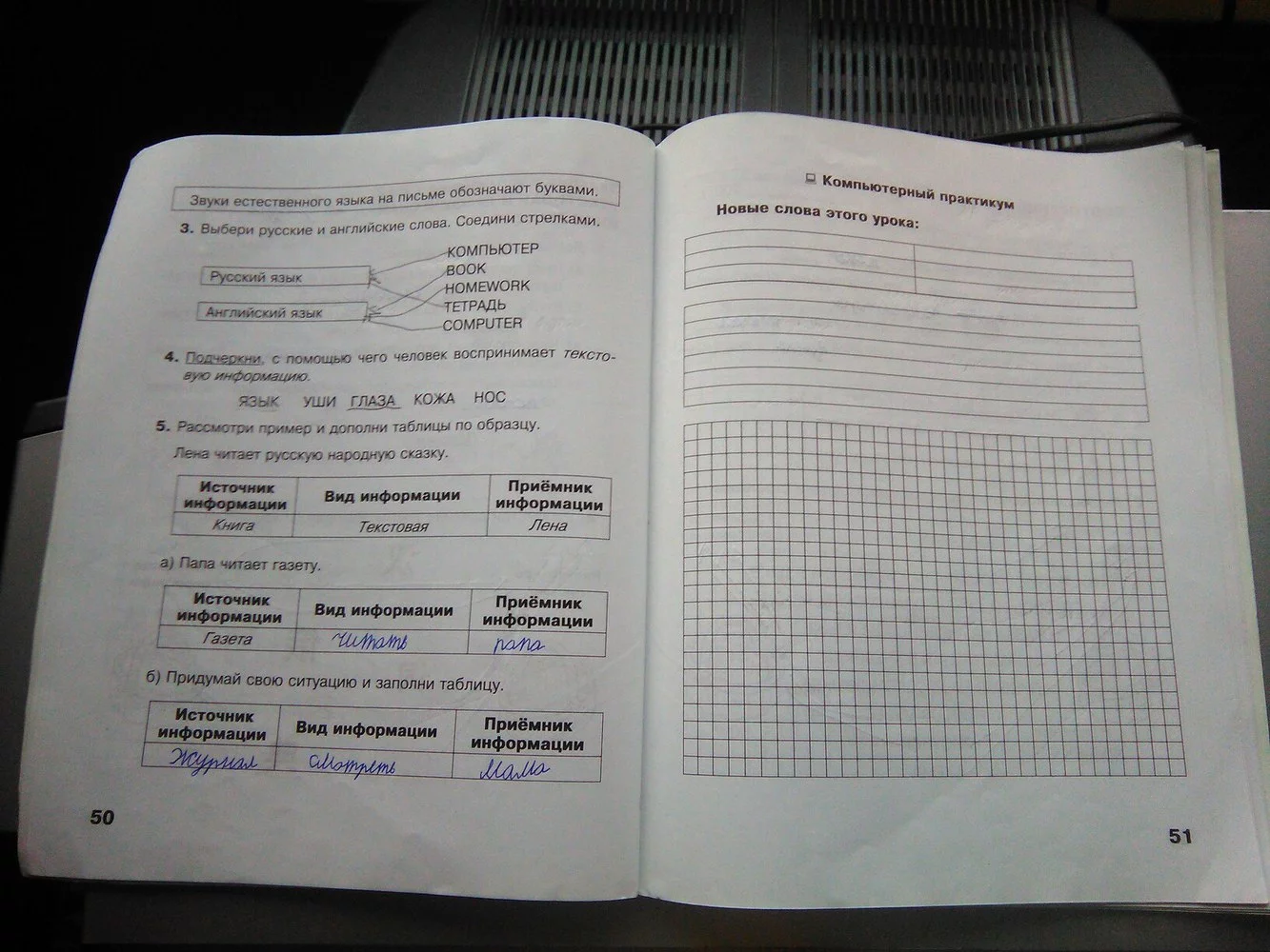 Решения домашних заданий по информатике 2 класс Матвеева Н.В 50-51 упражнение Рабочая тетрадь