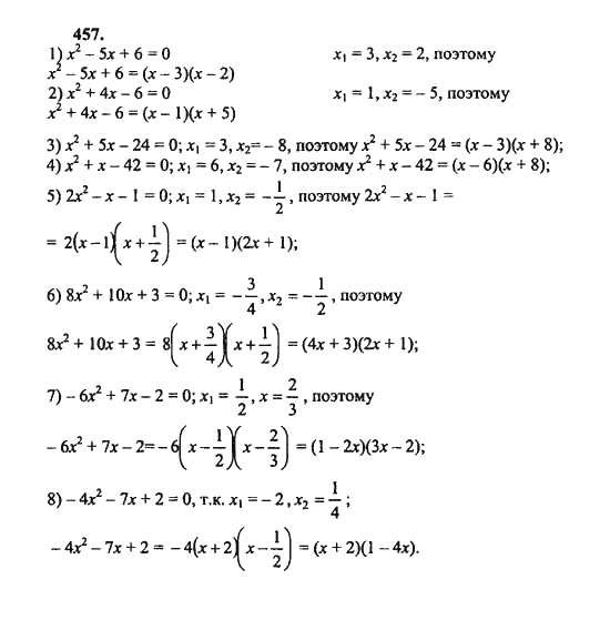 Решения домашних заданий по алгебре 8 класс Алимов Ш.А. 457 упражнение