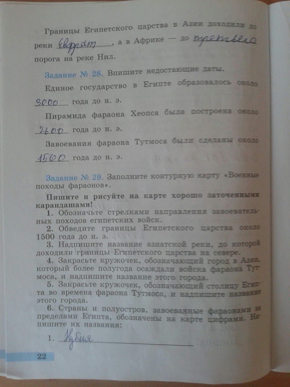 Решения домашних заданий по истории 5 класс Годер Г.И. 22 упражнение Рабочая тетрадь