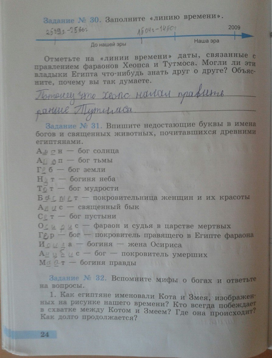 Решения домашних заданий по истории 5 класс Годер Г.И. 24 упражнение Рабочая тетрадь