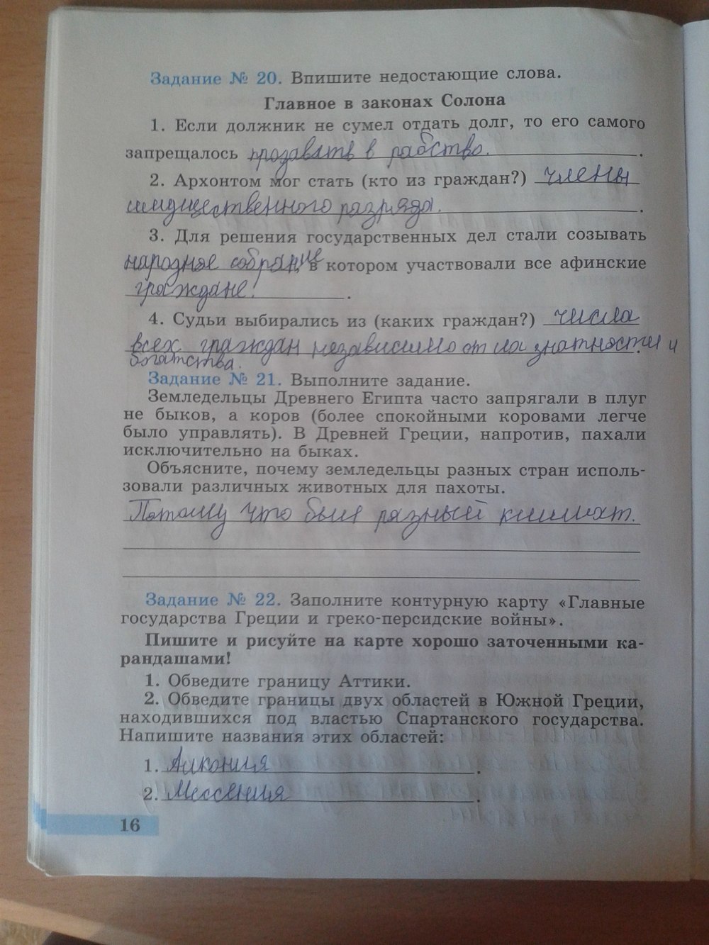 Решения домашних заданий по истории 5 класс Годер Г.И. 16 упражнение Рабочая тетрадь