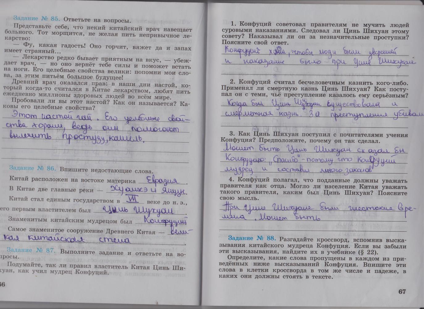 Решения домашних заданий по истории 5 класс Годер Г.И. 66-67 упражнение Рабочая тетрадь