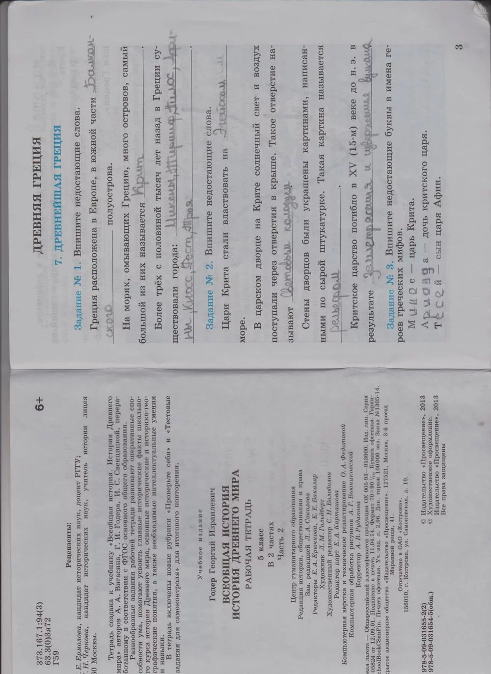 Решения домашних заданий по истории 5 класс Годер Г.И. 3 упражнение Рабочая тетрадь