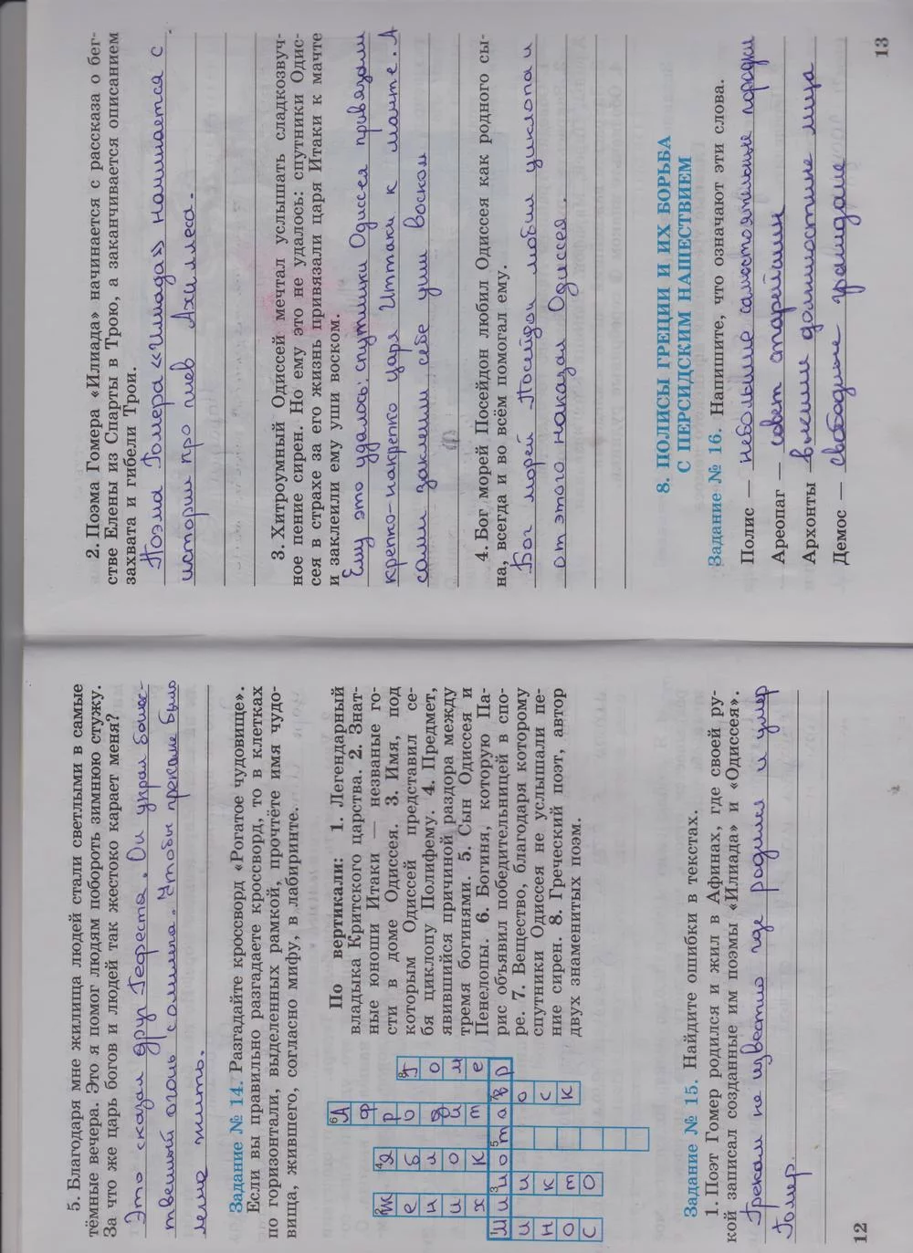 Решения домашних заданий по истории 5 класс Годер Г.И. 12-13 упражнение Рабочая тетрадь