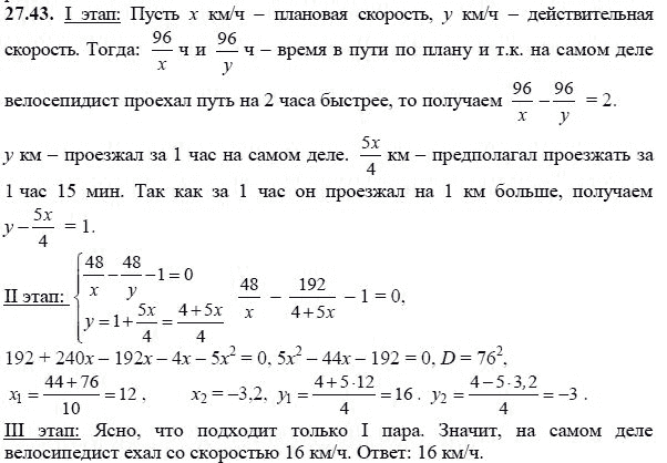 Решения домашних заданий по алгебре 8 класс Мордкович А.Г., Мордкович Т.Н. 27.43 упражнение