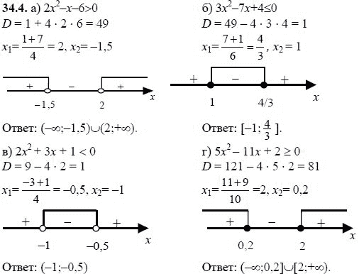 Решения домашних заданий по алгебре 8 класс Мордкович А.Г., Мордкович Т.Н. 34.4 упражнение