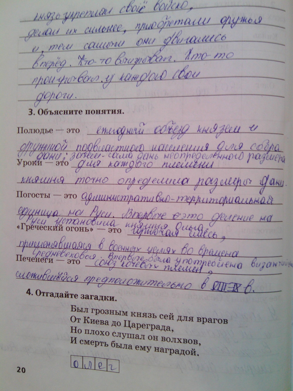 Решения домашних заданий по истории 6 класс Кочегаров К.А., Пчелов Е.В. 20 упражнение Рабочая тетрадь
