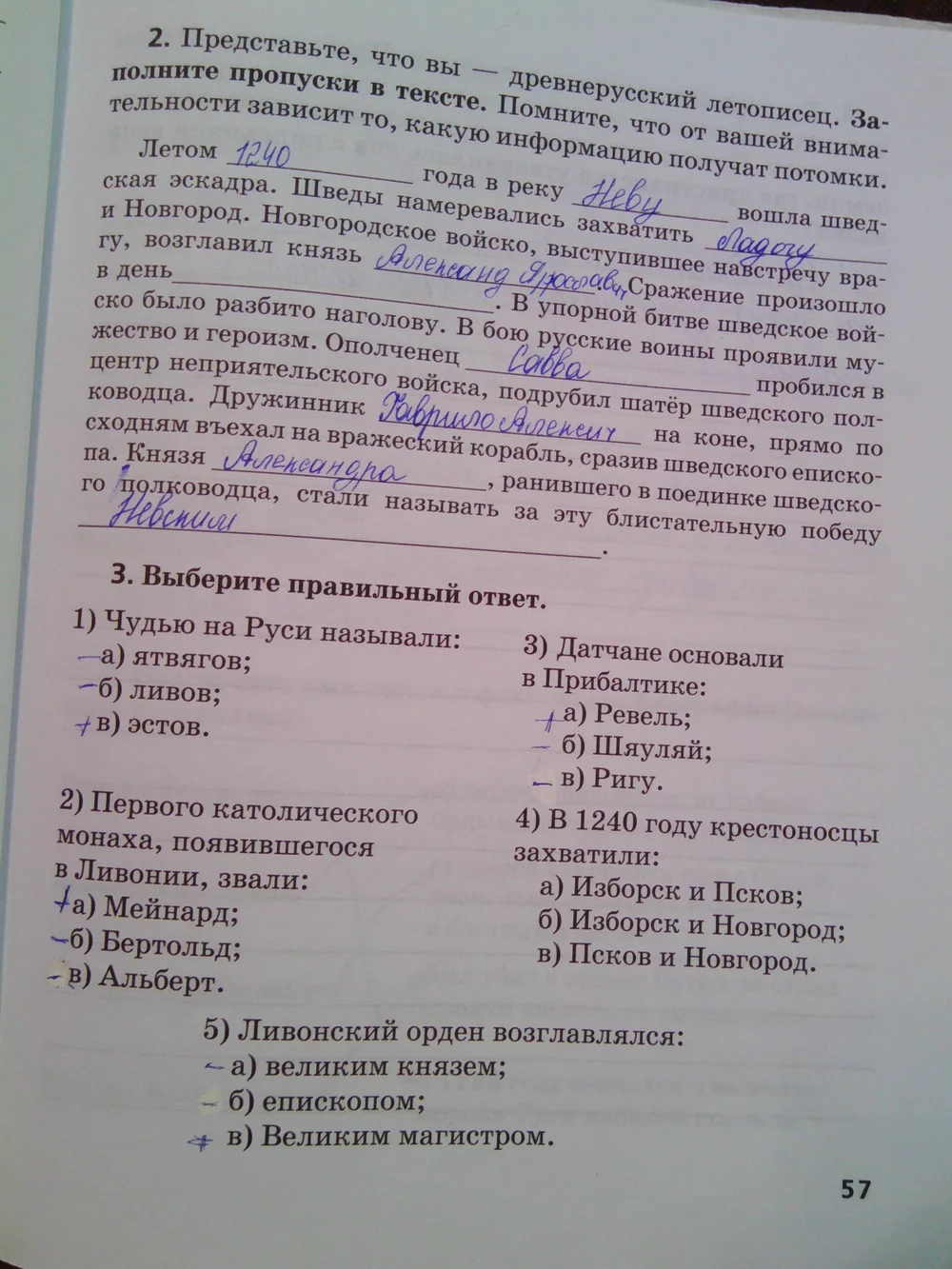 Решения домашних заданий по истории 6 класс Кочегаров К.А., Пчелов Е.В. 57 упражнение Рабочая тетрадь
