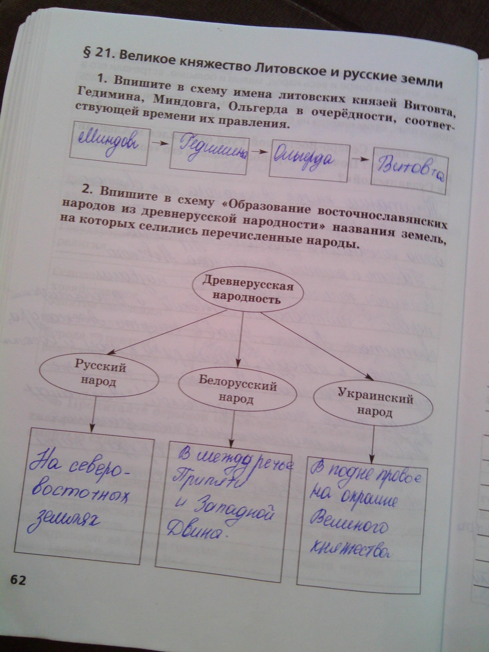 Решения домашних заданий по истории 6 класс Кочегаров К.А., Пчелов Е.В. 62 упражнение Рабочая тетрадь