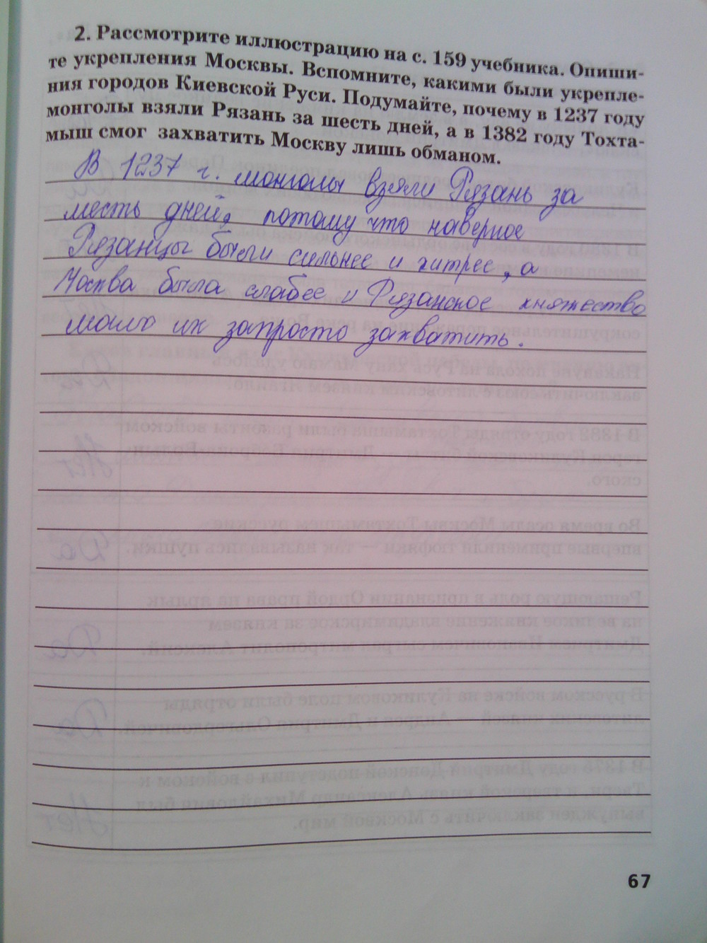 Решения домашних заданий по истории 6 класс Кочегаров К.А., Пчелов Е.В. 67 упражнение Рабочая тетрадь