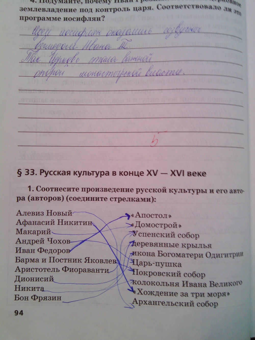 Решения домашних заданий по истории 6 класс Кочегаров К.А., Пчелов Е.В. 94 упражнение Рабочая тетрадь