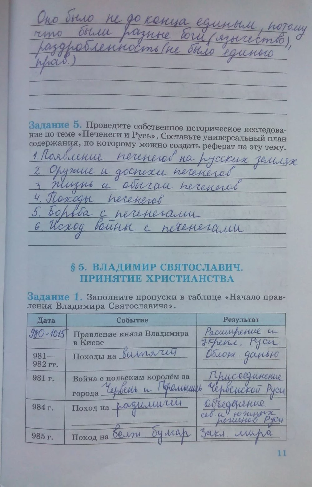 Решения домашних заданий по истории 6 класс Косулина Л.Г., Данилов А.А. 11 упражнение Рабочая тетрадь