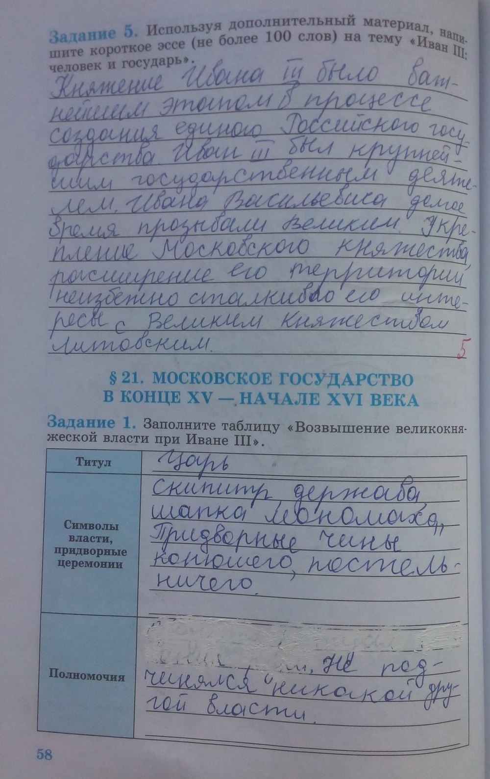 Решения домашних заданий по истории 6 класс Косулина Л.Г., Данилов А.А. 58 упражнение Рабочая тетрадь