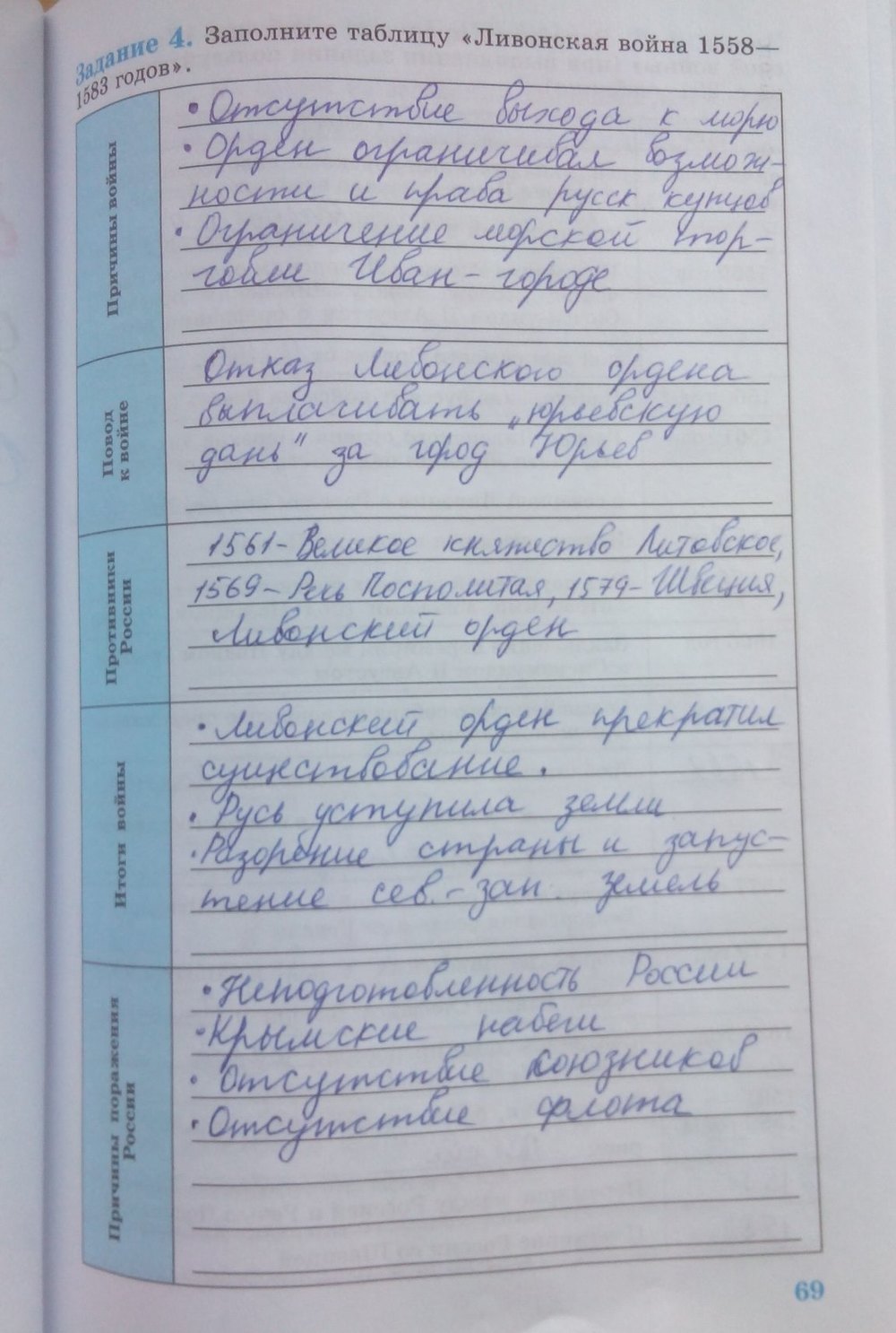 Решения домашних заданий по истории 6 класс Косулина Л.Г., Данилов А.А. 69 упражнение Рабочая тетрадь
