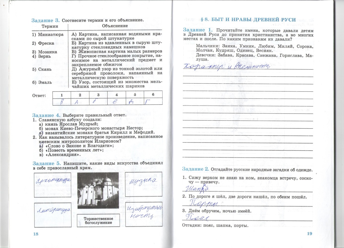 Решения домашних заданий по истории 6 класс Данилов А.А. Косулина Л.Г 18-19 упражнение Рабочая тетрадь