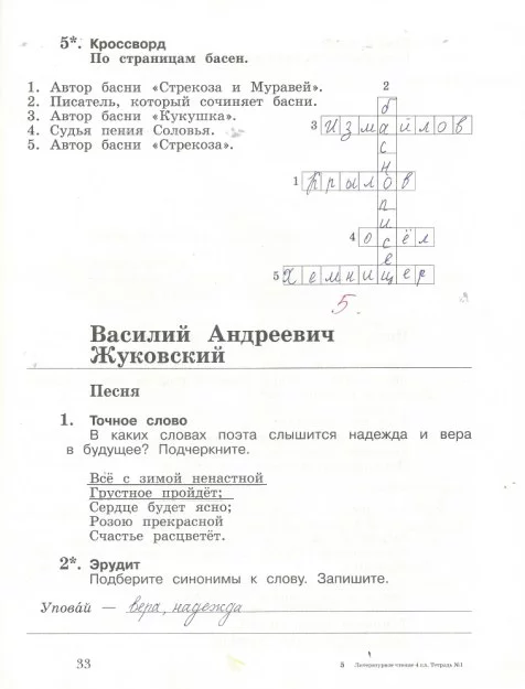 Решения домашних заданий по литературе 4 класс Ефросинина Л.А 33 упражнение Рабочая тетрадь