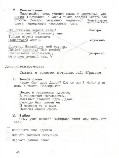 Решения домашних заданий по литературе 4 класс Ефросинина Л.А 45 упражнение Рабочая тетрадь