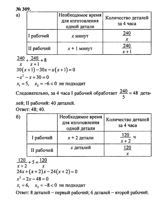 Решения домашних заданий по алгебре 8 класс Никольский С.М. 309 упражнение