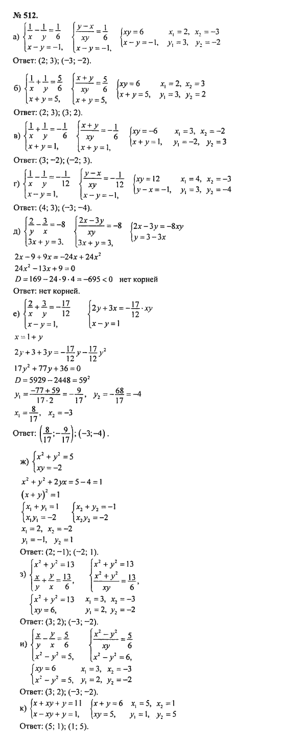 Решения домашних заданий по алгебре 8 класс Никольский С.М. 512 упражнение