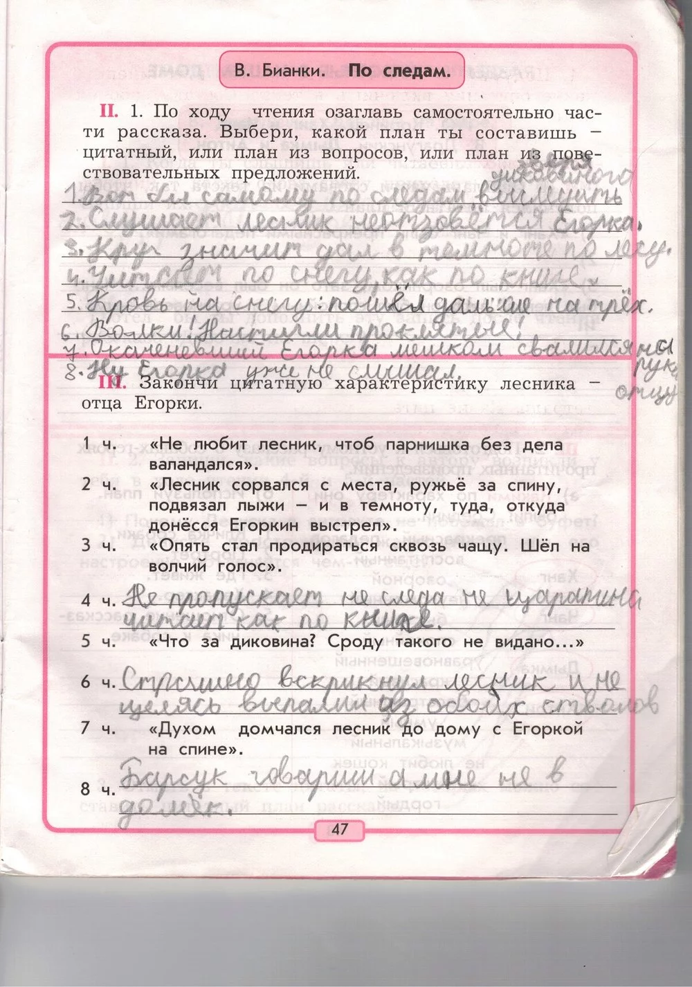 Решения домашних заданий по литературе 3 класс Бунеев Р. Н., Бунеева Е. В. 47 упражнение Рабочая тетрадь