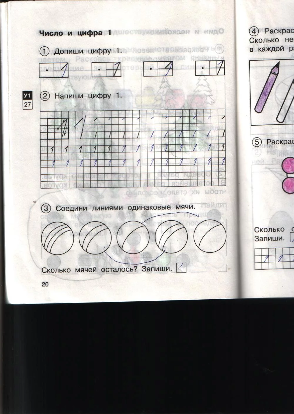Решения домашних заданий по математике 1 класс Захарова О.А., Юдина Е.П. 20 упражнение Рабочая тетрадь