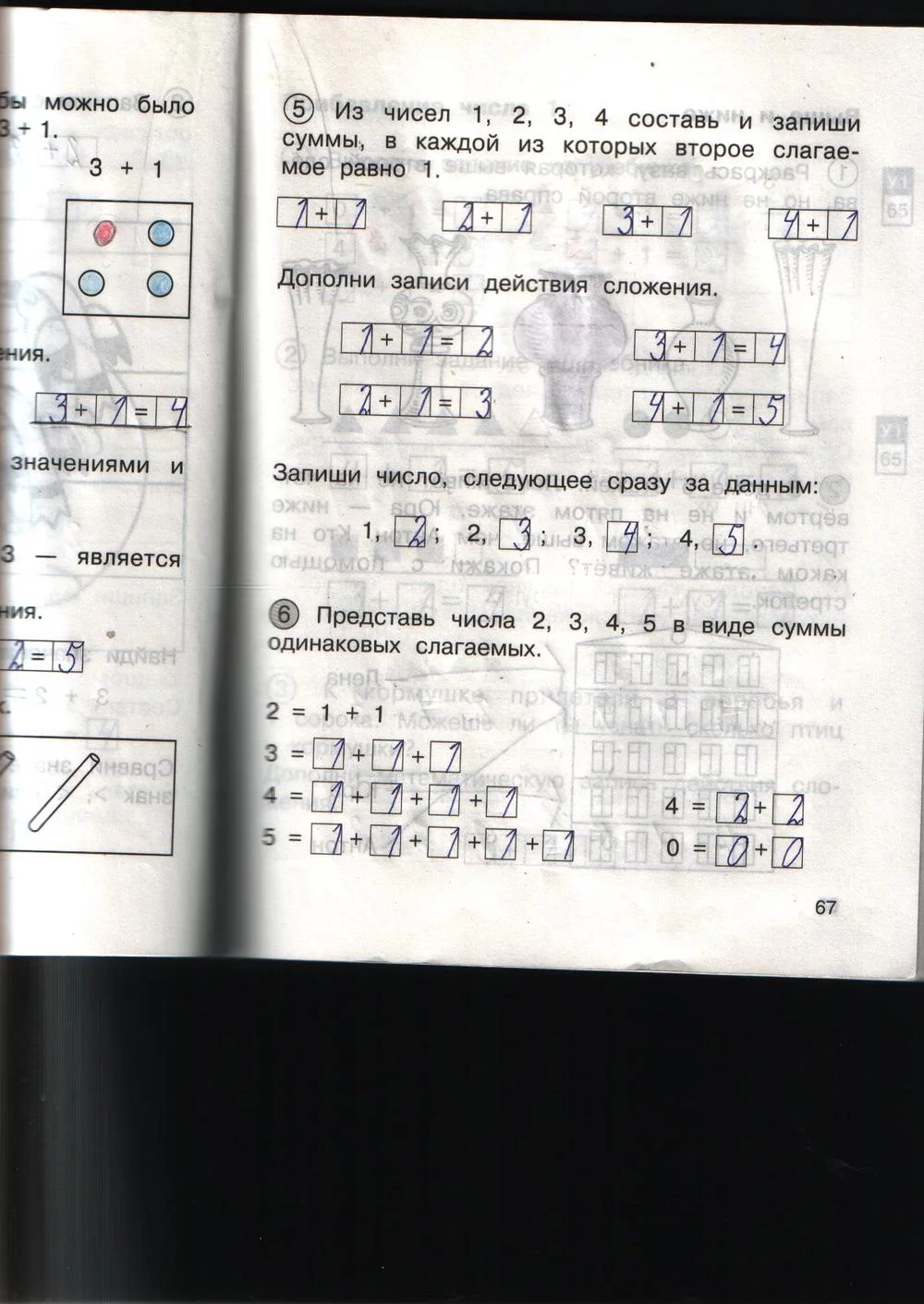 Решения домашних заданий по математике 1 класс Захарова О.А., Юдина Е.П. 67 упражнение Рабочая тетрадь