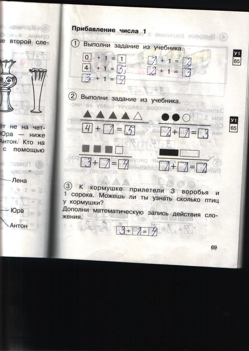 Решения домашних заданий по математике 1 класс Захарова О.А., Юдина Е.П. 69 упражнение Рабочая тетрадь