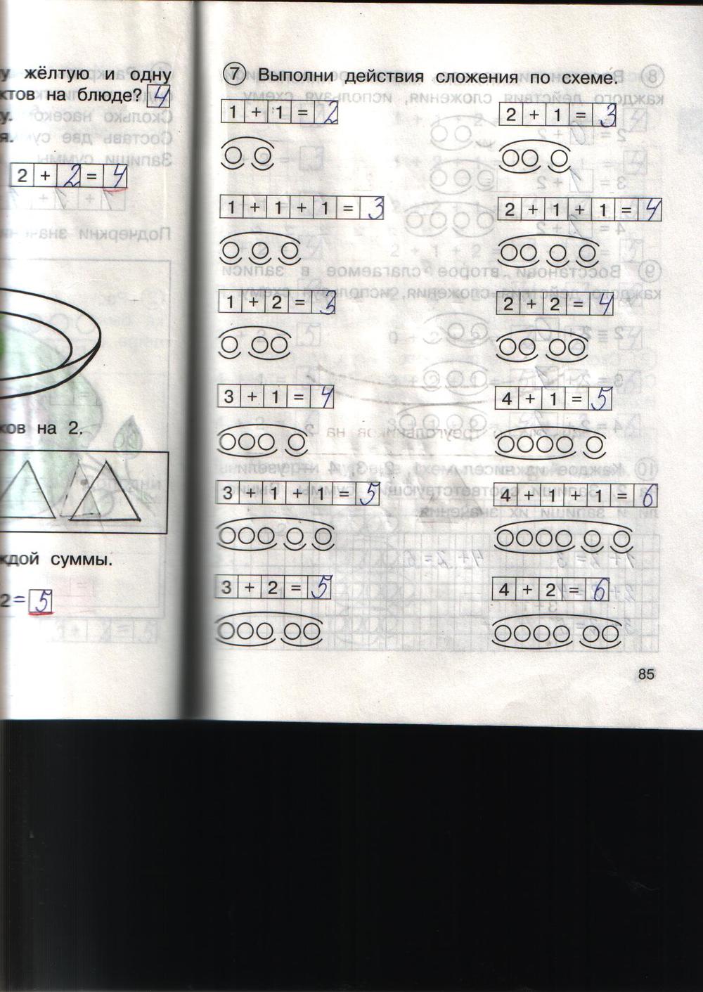 Решения домашних заданий по математике 1 класс Захарова О.А., Юдина Е.П. 85 упражнение Рабочая тетрадь