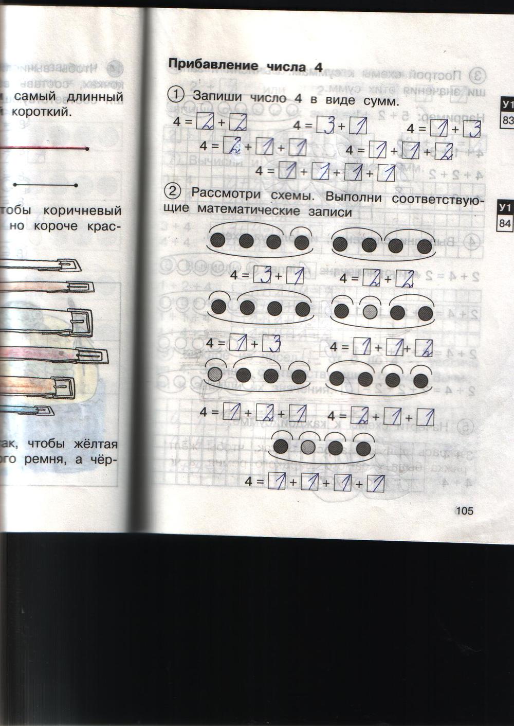 Решения домашних заданий по математике 1 класс Захарова О.А., Юдина Е.П. 105 упражнение Рабочая тетрадь