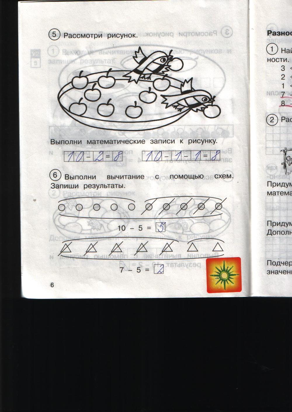 Решения домашних заданий по математике 1 класс Захарова О.А., Юдина Е.П. 6 упражнение Рабочая тетрадь