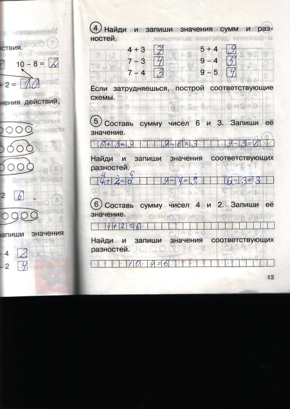 Решения домашних заданий по математике 1 класс Захарова О.А., Юдина Е.П. 13 упражнение Рабочая тетрадь