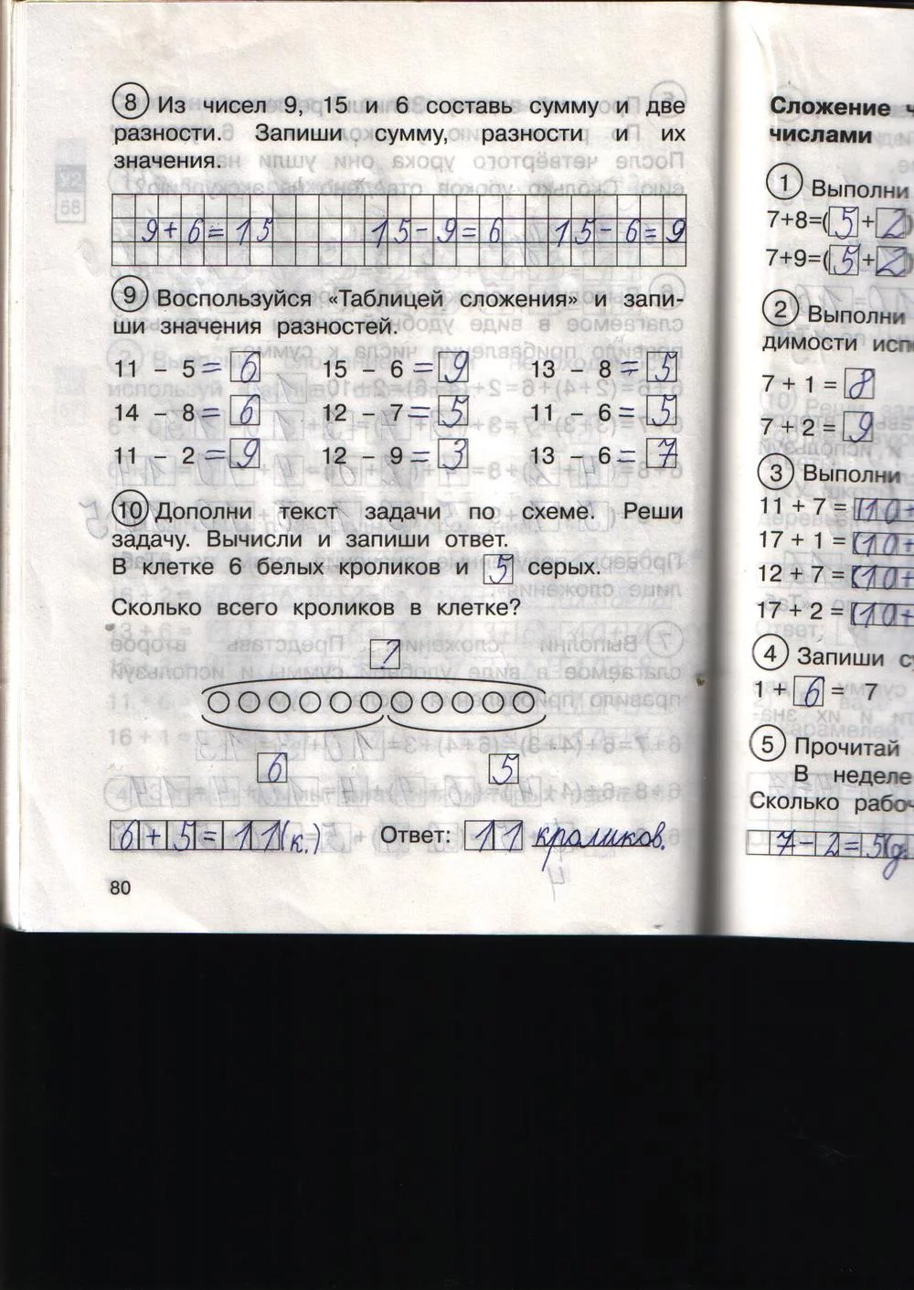 Решения домашних заданий по математике 1 класс Захарова О.А., Юдина Е.П. 80 упражнение Рабочая тетрадь