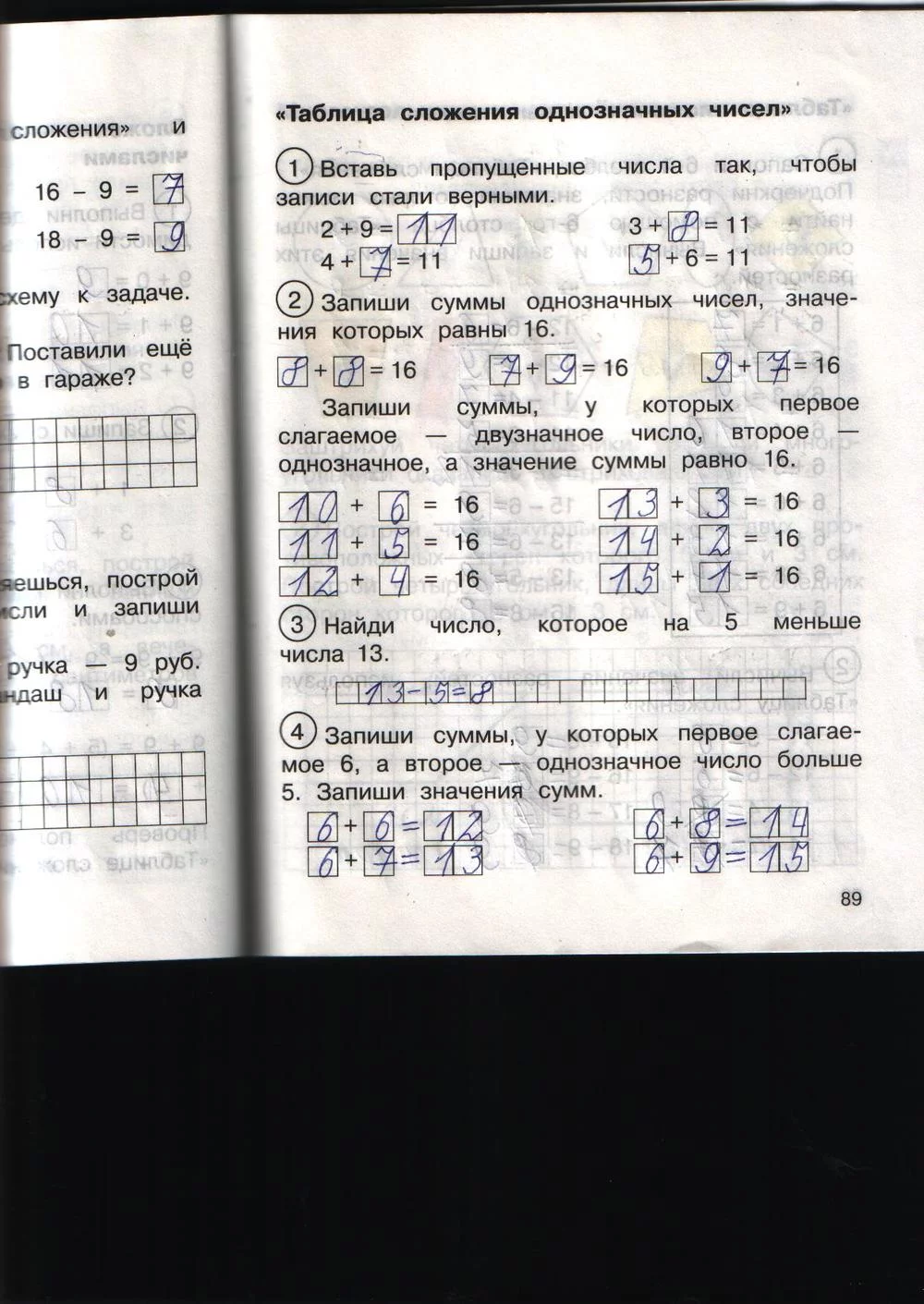 Решения домашних заданий по математике 1 класс Захарова О.А., Юдина Е.П. 89 упражнение Рабочая тетрадь