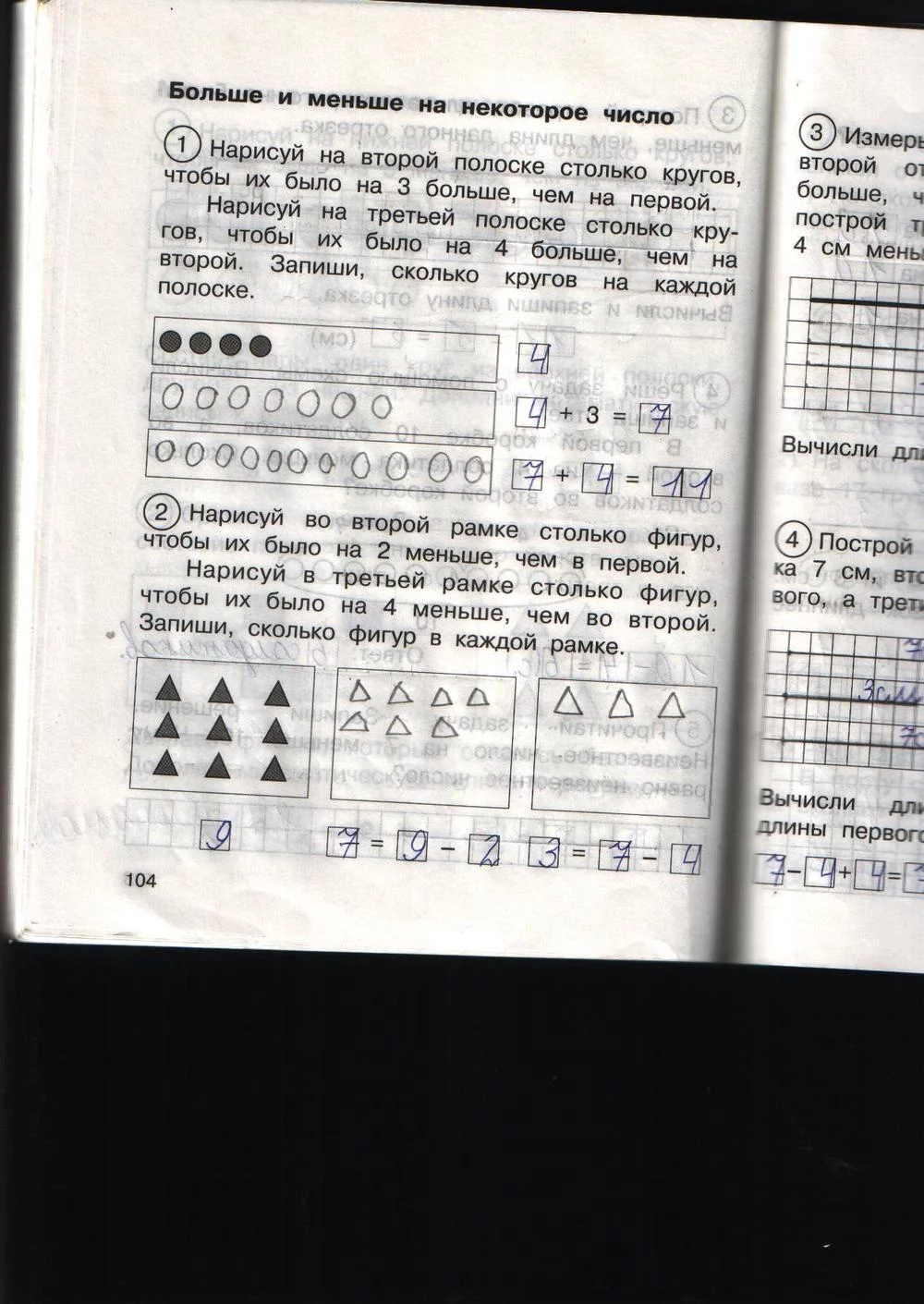 Решения домашних заданий по математике 1 класс Захарова О.А., Юдина Е.П. 104 упражнение Рабочая тетрадь