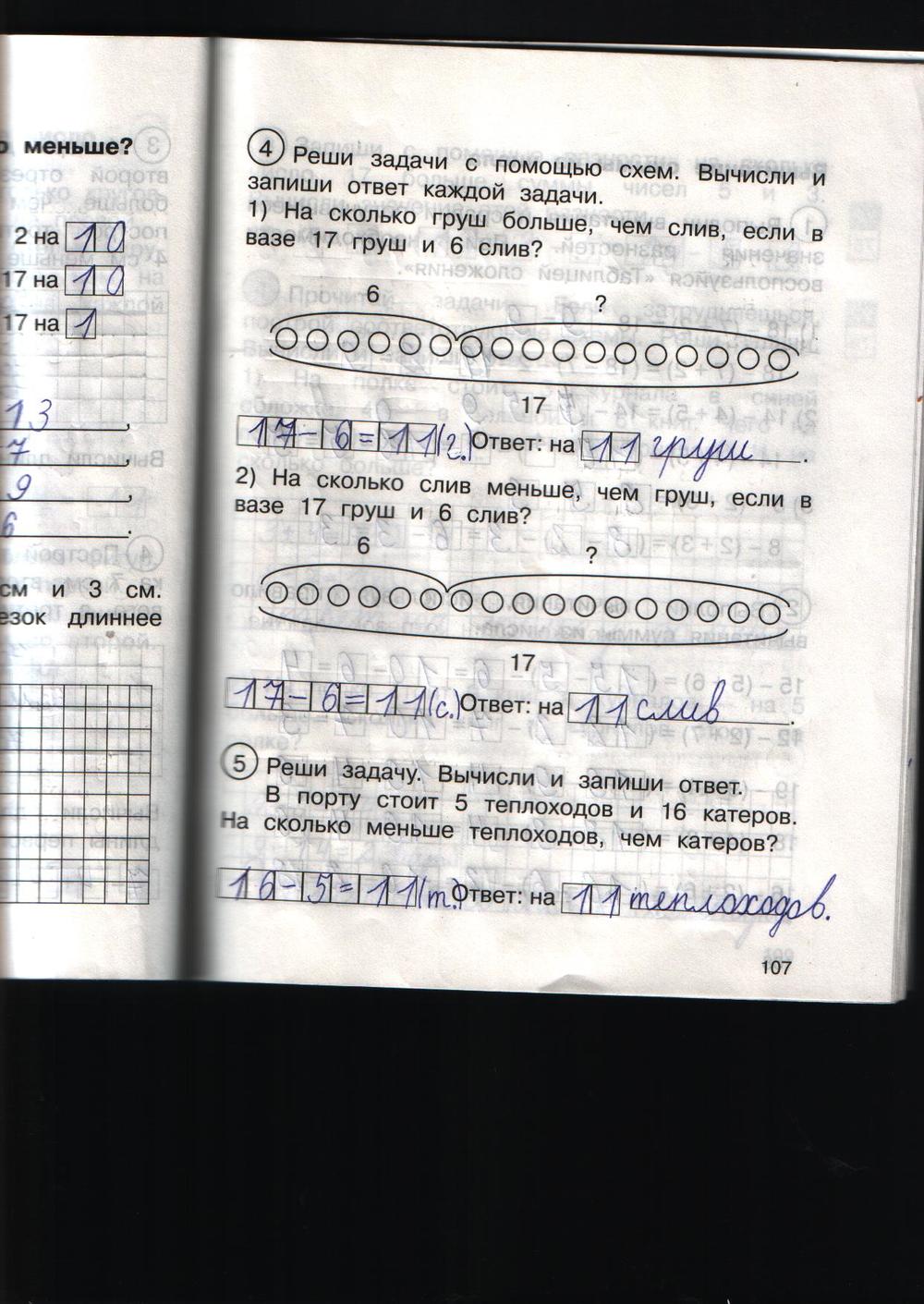 Решения домашних заданий по математике 1 класс Захарова О.А., Юдина Е.П. 107 упражнение Рабочая тетрадь