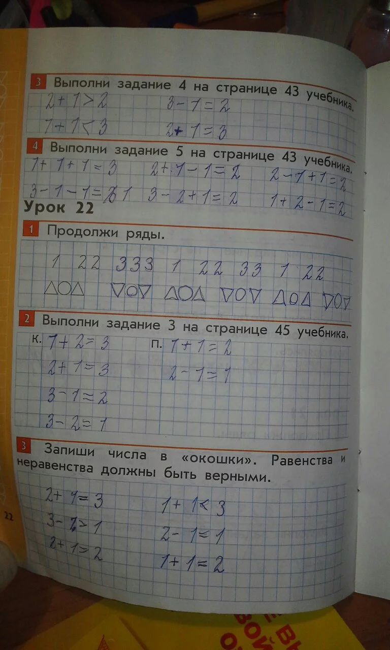 Решения домашних заданий по математике 1 класс Демидова Т.Е., Козлова С.А. 22 упражнение Рабочая тетрадь
