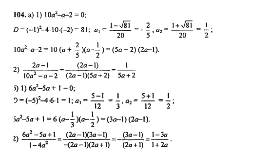 Решения домашних заданий по алгебре 9 класс Макарычев Ю.Н. 104 упражнение