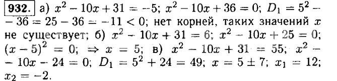 Решения домашних заданий по алгебре 9 класс Макарычев Ю.Н. 932 упражнение
