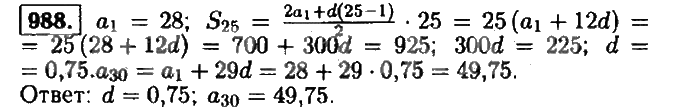 Решения домашних заданий по алгебре 9 класс Макарычев Ю.Н. 988 упражнение