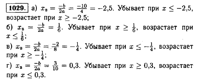 Решения домашних заданий по алгебре 9 класс Макарычев Ю.Н. 1029 упражнение