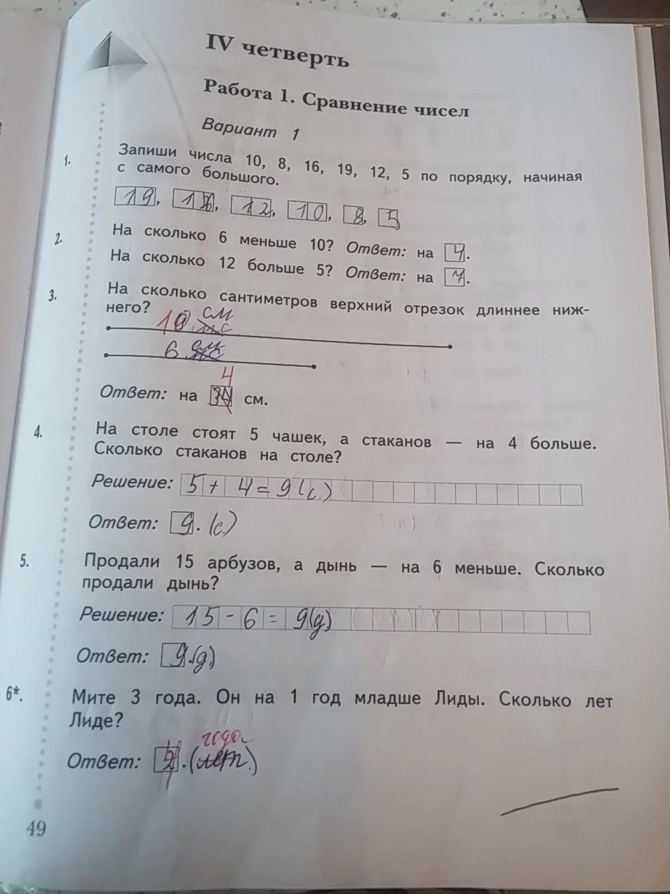 Решения домашних заданий по математике 1 класс Рудницкая В.Н. 49 упражнение Рабочая тетрадь