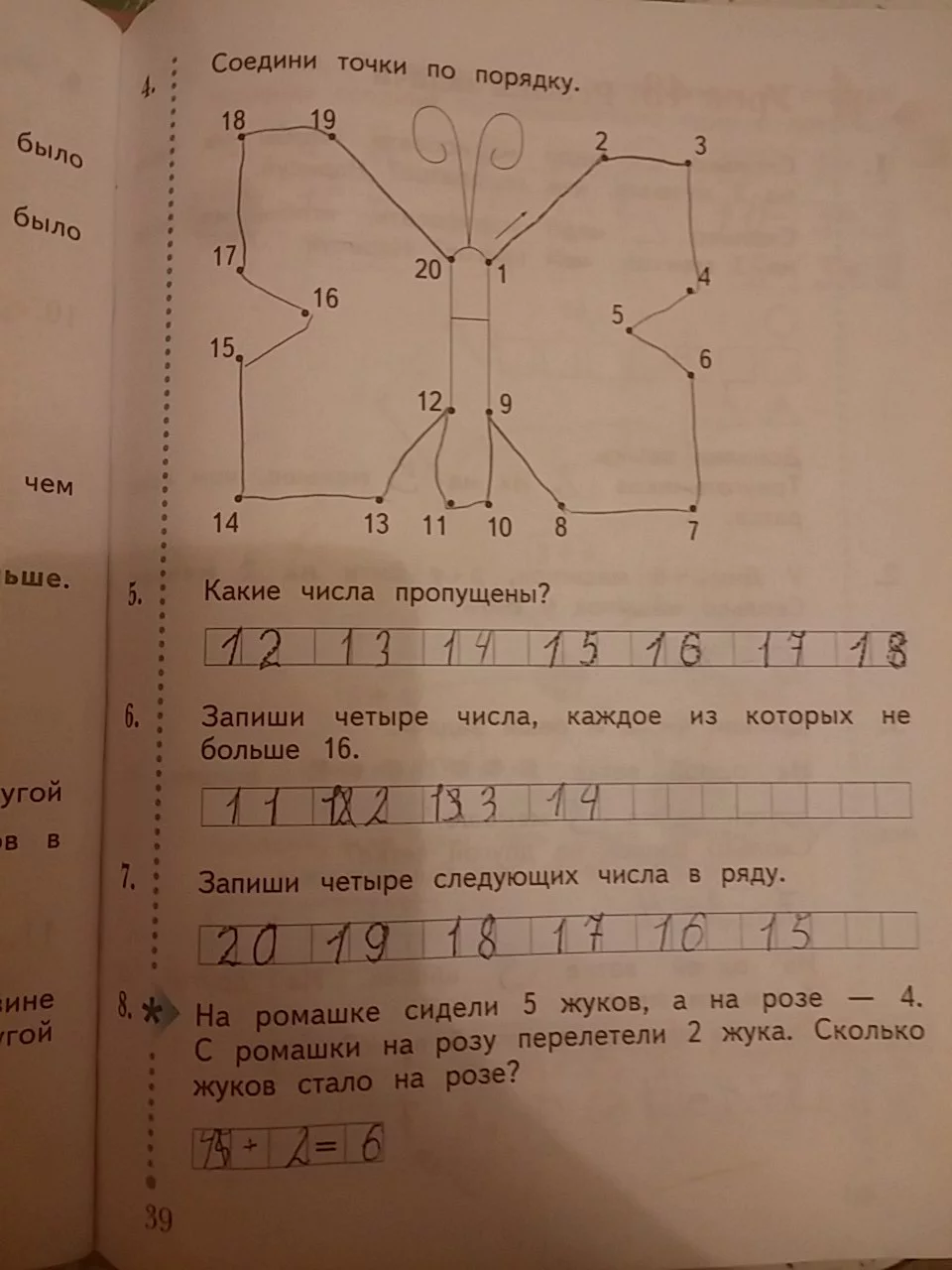 Решения домашних заданий по математике 1 класс Рудницкая В.Н. 39 упражнение Рабочая тетрадь