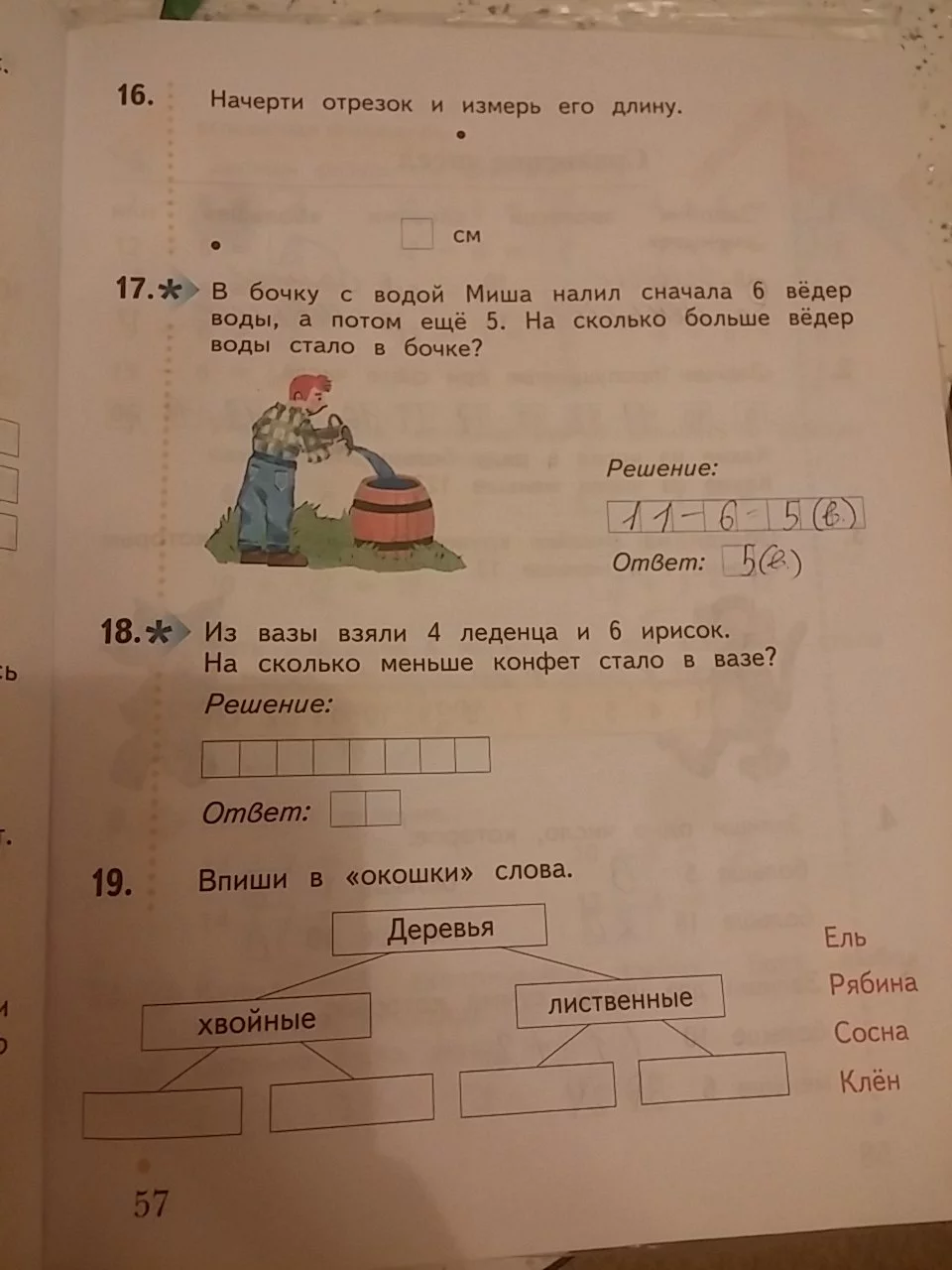 Решения домашних заданий по математике 1 класс Рудницкая В.Н. 57 упражнение Рабочая тетрадь