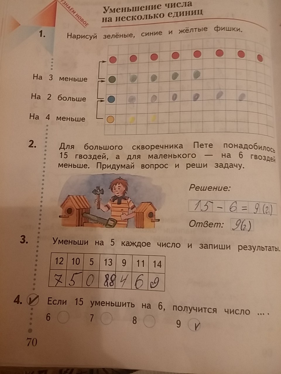 Решения домашних заданий по математике 1 класс Рудницкая В.Н. 70 упражнение Рабочая тетрадь
